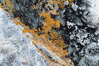 Het geel vormt een mooi contrast met het zwart en grijs van de berg.