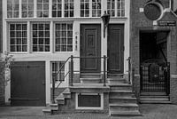De opgang van het grachtenpand aan de Korte Prinsengracht in Amsterdam bestaat uit twee stenen trappetjes, één aan de voorkant en de ander aan de linkerzijkant.