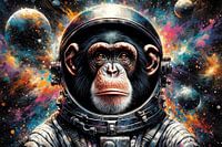 Koop dit Popart kunstwerk Kosmisch uitzicht: Chimpansee als astronaut van artefacti op canvas, aluminium dibond, (ingelijste) fotoprint, behang en ArtFrame, op maat geprint in Fine-Art kwaliteit.