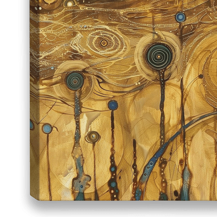 Laat je betoveren door deze sterrennacht, waar gouden tinten samensmelten met diepe donkere kleuren. Het werk doet denken aan een sterrenhemel vol geheimen en magie. Perfect voor wie houdt van een vleugje mysterie in het interieur. Ideaal voor woonkamers, slaapkamers en ontspanningsruimtes.