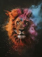 "Kosmische Koning" is een adembenemend portret van een leeuw, meesterlijk overgoten met een kosmisch palet van kleuren en sterrenstof. Het krachtige gezicht van de leeuw, symbool van autoriteit en moed, wordt hier op een artistieke manier verheven tot iets haast buitenaards. De explosie van kleuren symboliseert de energie en het leven…