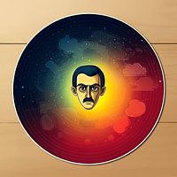 Te midden van een wervelend astraal tafereel zweeft een eenzaam, raadselachtig gezicht - kalm, onverstoorbaar en verlicht door een stille innerlijke corona. Het universum lijkt naar buiten te kabbelen door zijn aanwezigheid, alsof de sterrenbeelden zichzelf herschikken om plaats te maken voor deze vreemde waarnemer. Warme kleurstrepen…