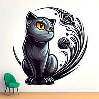 Dit prachtige kunstwerk geeft de mystiek weer van een hemelse kat met doordringende amberkleurige ogen, die sereen zit te midden van wervelende kosmische energie. De vloeiende bogen, draadachtige bollen en geometrische fragmenten die de kat omcirkelen suggereren zowel speelsheid als immense kracht, en belichamen de dualiteit van…