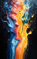 Dit werk, een betoverende explosie van levendige kleuren op een zwart doek, vangt de rauwe energie en chaotische schoonheid van creativiteit. Elke plons en druppel lijkt de zwaartekracht te tarten en vormt een universum van levendige tinten die de verbeelding aanwakkeren. Dit kunstwerk belichaamt de spontaniteit van kunst in zijn…