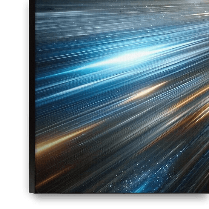 Een dynamische afbeelding van een uitbarsting van licht in de ruimte. Stralen van heldere kleuren - blauw, geel en wit - verspreiden zich in alle richtingen vanuit een centraal, helder lichtpunt. Omringd door fonkelende sterren en een kosmische achtergrond, geeft het beeld een gevoel van snelheid en oneindigheid. Het doet denken aan een…