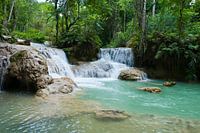Prachtig natuurgebied met de beroemde Kouang Si Waterfall bij Luang Prabang Laos. Spectaculaire waterterrassen in een schitterende omgeving.