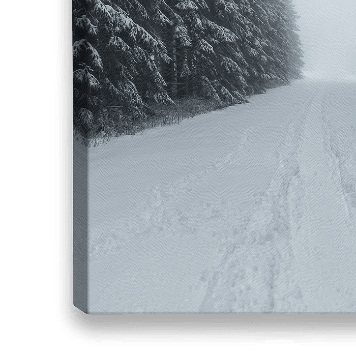 Een koud pad dat leidt tussen deze machtige sparren. Op een of andere manier werd ik gedwongen om er doorheen te lopen.