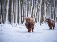 Schotse Hooglanders tijdens de koude winter van 2021 op het gebed zonder einde in Hilversum (gebed zonder end)