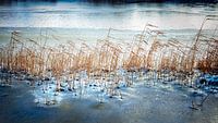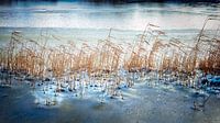 Een strook riet in het inmiddels bevroren water van de ringvaart in Purmerend. Omgeven door sneeuw en glanzend ijs wachten zij de komst van de lente af.