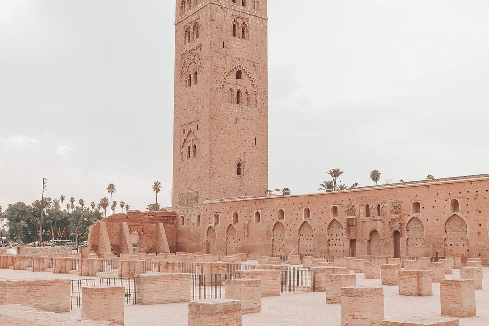 De Koutoubia, gebouwd in de 12e eeuw onder het bewind van de Almohaden, is het bekendste herkenningspunt van de stad. Met haar 77 meter hoge minaret diende zij als voorbeeld voor de Giralda in Sevilla en de Hassan-toren in Rabat.
