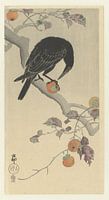 Kraai met kakivrucht, Ohara Koson, 1900 - 1910