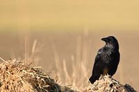 Een hele gewone vogel, de kraai, maar in de juiste setting wordt zo'n vogel echt iets bijzonders. Het geel van de achtergrond en van het stro, zorgen voor een woestijnachtige associatie. De zwarte veren glanzen door de zon en zorgen voor een mooi contrast met de nevelachtige, doffe achtergrond. De vogel komt daardoor mooi los van de…