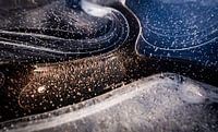 Abstracte vormen van ijs op een winterse dag in Nederland. Luchtbellen gevangen in het ijs. Past goed in een strak modern interieur. Foto gemaakt op een meer in de Groote Peel, Limburg.