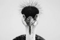 Dit prachtige zwart-wit portret van een kraanvogel legt de gratie en elegantie van deze majestueuze vogel perfect vast. De fijne details en strakke lijnen van het verenkleed geven het beeld een tijdloze schoonheid. Dit kunstwerk is ideaal voor liefhebbers van decoratieve kunst en minimalistische fotografie en brengt de rustige elegantie…