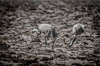 Kraanvogels in het stroomgebied van rivier de Allier in de Auvergne, Frankrijk. Waar ze met duizenden overwinteren