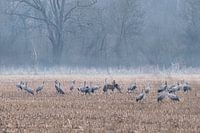 Kraanvogels in het stroomgebied van rivier de Allier in de Auvergne, Frankrijk. Waar ze met duizenden overwinteren.