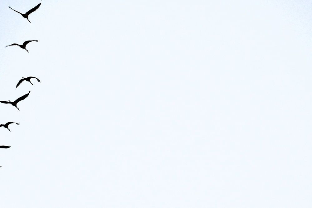 Kraanvogels vliegen in de lucht. Dierenfoto van trekvogels.