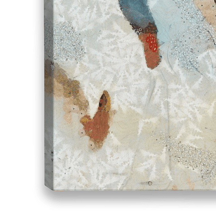 Abstract kleurrijk fantasie schilderij met kraanvogels. Mixed media in Gustav Klimt schilderstijl op grof canvas doek.