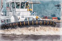 De krachtige sleepboot "PERFECT" ploegt met een daverende aanwezigheid en tomeloze energie door de wateren van de haven van Hamburg - een symbool van maritieme kracht en precisie. De imposante boeggolf, die zich voor hem uitspreidt als een kolkend tapijt, vertelt over snelheid, toewijding en het onvermoeibare werk van deze havenhelden.…