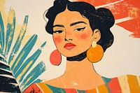 Dit levendige en moderne kunstwerk straalt energie en kracht uit. Het portretteert een zelfverzekerde vrouw met een intens expressieve blik, weergegeven in een stijl die doet denken aan Pop Art. Haar gezicht is bedekt met warme tinten zoals oranje en rood, terwijl de omringende abstracte planten en grafische vormen in blauw en geel voor een speelse en dynamische compositie zorgen. De scherpe lijnen en grote oorbellen voegen een extra vleugje mode toe, waardoor dit kunstwerk niet alleen een visueel statement maakt, maar ook een subtiel gevoel van individualiteit en stijl uitstraalt. Perfect voor in een moderne woonkamer of kantoorruimte om kleur en een moderne touch aan het interieur toe te voegen.