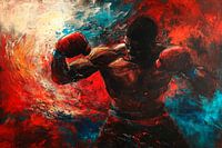 Koop dit abstracte kunstwerk Krachtige boksscène in levendige kleuren van Poster Art Shop op canvas, aluminium dibond, (ingelijste) fotoprint, behang en ArtFrame, op maat geprint in Fine-Art kwaliteit.
