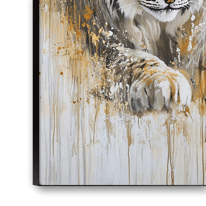 Dit unieke kunstwerk vangt de wilde essentie van een lynx met een dynamische mix van realisme en expressieve verfspatten. Het dier straalt kracht en mysterie uit, terwijl de opvallende kleuren en verfspetters voor een moderne en energieke uitstraling zorgen. Deze combinatie van realistische details en abstracte elementen maakt dit schilderij tot een echte blikvanger, perfect voor liefhebbers van zowel natuur als hedendaagse kunst. Ideaal om sfeer toe te voegen aan een woonkamer of kantoorruimte, dit stuk zal zonder twijfel de aandacht trekken en een gevoel van wilde schoonheid oproepen. Een krachtige en stijlvolle toevoeging aan elk interieur.