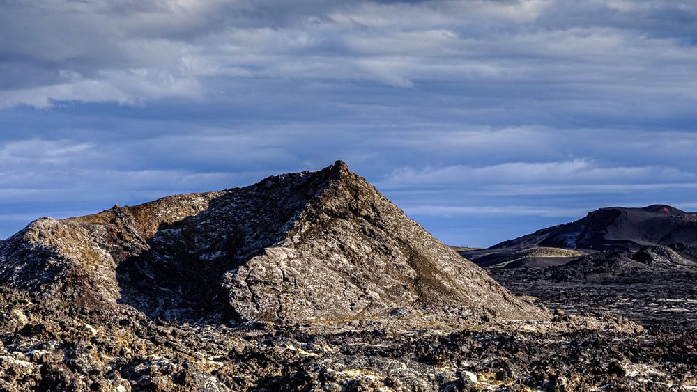 Krafla Lavaveld, IJsland. Krafla is een vulkaan en vulkanisch systeem in het noorden van IJsland in de buurt van het Mývatn-meer. Het systeem heeft een diameter van ongeveer 25 kilometer. De vulkaan zelf is 818 meter hoog en bestaat bijna geheel uit tephra.