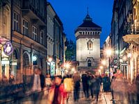 Blaue Stunde über der polnischen Stadt Krakau: Eine Impression aus der Ulica Floriańska (Floriansgasse) in der historischen Altstadt.