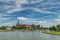 Blick ueber den Fluss Weichsel zum Wawel. Der Wawel ist die ehemalige Residenz der polnischen Koenige in Krakau und gehoert heute zum Weltkulturerbe der UNESCO, Krakau, Kleinpolen, Malopolskie, Polen, Europa