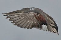 Mannetjes hebben een bruine kop en een zwart achterlijf met lichtbruine staartpunt. De rest van het lichaam is grijs met een fijne tekening, wat het beste te zien is op de borst. De schouderveren zijn opvallend lang en beige van kleur en de snavel grijszwart. Vrouwtjes lijken sterk op de wilde eend. De witte spiegel, de witte buik en de oranje snavel vormen de belangrijkste kenmerken om vrouwtjes van wilde eenden te onderscheiden.