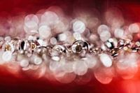 Zilverkleurige kralen verlicht met LED licht, gefotografeerd met geringe scherptediepte.