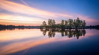 De Kralingse plas tijdens een prachtige zonsopkomst. Het water spiegelt de kleurrijke lucht waardoor dit idyllische plaatje ontstaat.