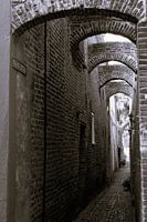 Het smalste en misschien wel mooiste steegje van Deventer; de Kranensteeg. Je waant je gelijk in de middeleeuwen. Het zwartwit geeft de foto gelijk een tijdloze indruk.