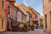 Kranj is een stad die in het noordwesten van Slovenië ligt. Het ligt ongeveer halverwege tussen Ljubljana en de oostenrijkse grens. Hier zien we een beeld van de kleurrijke binnenstad van Kranj.