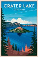 De zachte blauwe tinten van Crater Lake weerspiegelen de rust van de natuur, terwijl op de voorgrond majestueuze bomen oprijzen. Het glinsterende wateroppervlak en de glooiende heuvels op de achtergrond creëren een harmonieuze achtergrond. Dit kunstwerk brengt een verfrissende sfeer in de woonkamer en nodigt je uit om te dromen en te ontspannen.