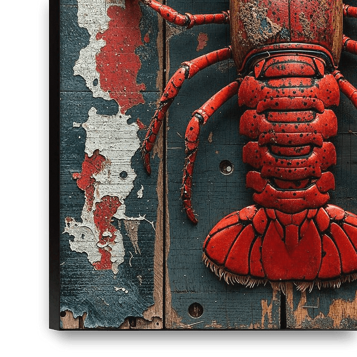 Hollandse kreeft, Canadese kreeft in rood op 4 planken van sloophout.
