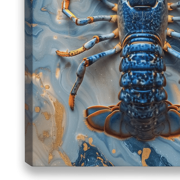 Een modern stilleven met een kreeft op een marmeren plaat. Abstract en artistiek.