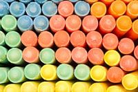 In een doos zitten verschillende krijt voor op het bord in de universiteit in een auditorium