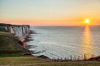 Zonsondergang bij Bois de Cise (Frankrijk, Picardië). Langs de kust kilometers krijtrotsen. Foto genomen op de Victor Hugo Panorama. Deze Franse schrijver, dichter en staatsman beschrijft in zijn dagboek van 7 september 1837 zijn wandeling richting Ault over de krijtrotsen.