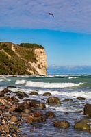 Steile kust en krijtrotsen bij Kaap Arkona aan de Oostzee op het eiland Rügen, Mecklenburg-Vorpommern, Duitsland.