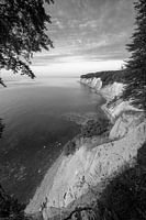 De beukenbossen daar staan op de Werelderfgoedlijst. Kustlandschap in portretformaat / staande foto in zwart-wit 90230067ays