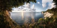 Panorama van de krijtrotsen op Rügen bij zonsopgang.