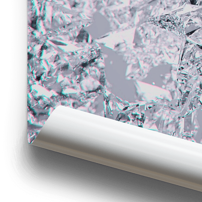 Kunstmatige kristalstructuren zoals ijs of glas met een lage scherptediepte en chromatische aberraties.