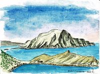 Eiland Goli van Lukovo (boven) aquarel geschilderd door VK (Veit Kessler) 2002