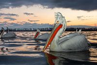 De Dalmatische pelikaan of Kroeskoppelikaan is een gigantische vogelsoort, één van de grootste der vogels. Hij wordt ca. 160 tot 183 cm lang, en heeft een spanwijdte van ca. 290 tot 345cm. Hij is enorm fotogeniek en dankt zijn naam aan de slordige kruinveren op zijn achterhoofd. Deze pelikanen werden gefotografeerd vanaf de kust of vanaf een bootje in Noord-Griekenland (Macedonie)