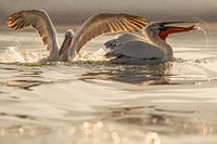 Koop dit vogel kunstwerk Kroeskoppelikanen in actie van Nanda Bussers op canvas, aluminium dibond, (ingelijste) fotoprint, behang en ArtFrame, op maat geprint in Fine-Art kwaliteit.