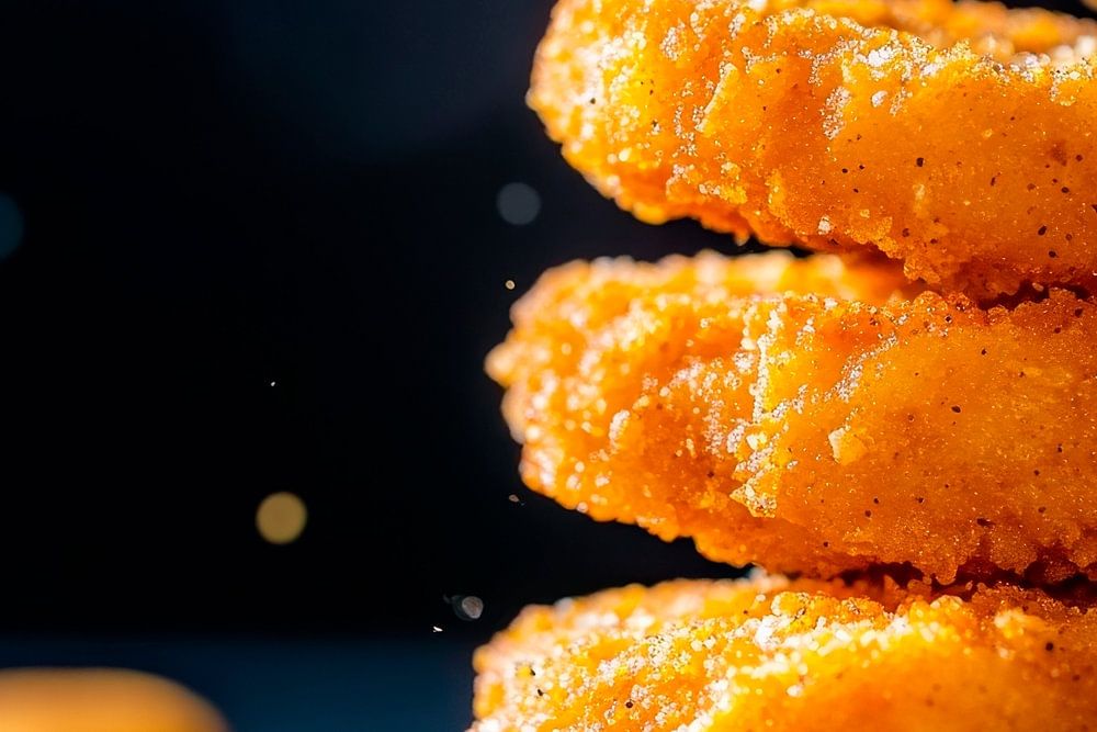 Krokant gebakken nuggets op een donkere achtergrond van Poster Art Shop