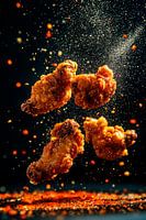 In een opwindend samenspel van vlees en specerijen dansen krokante kippenvleugels in de luchtige ruimte, omringd door een nevel van specerijen. Hun gouden kleur en verleidelijke textuur geven elke blik een vleugje eetlust. Dit indrukwekkende kunstwerk is perfect voor in de keuken, waar het inspireert tot culinaire hoogstandjes en culinaire avonturen.