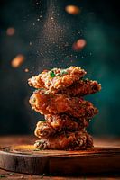 Een heerlijke bedrieger van knapperig gebakken stukjes kip lonkt met zijn goudbruine glans en perfecte kruidenkorst. Het aroma van kruiden en specerijen hangt verleidelijk in de lucht als de sappige stukjes op elkaar gestapeld worden. Dit kunstwerk is perfect voor in de keuken, waar het symbool staat voor gezelligheid en kookplezier.