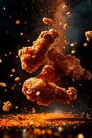 Krokante stukjes kip tijdens de vlucht - pure verwennerij van Poster Art Shop